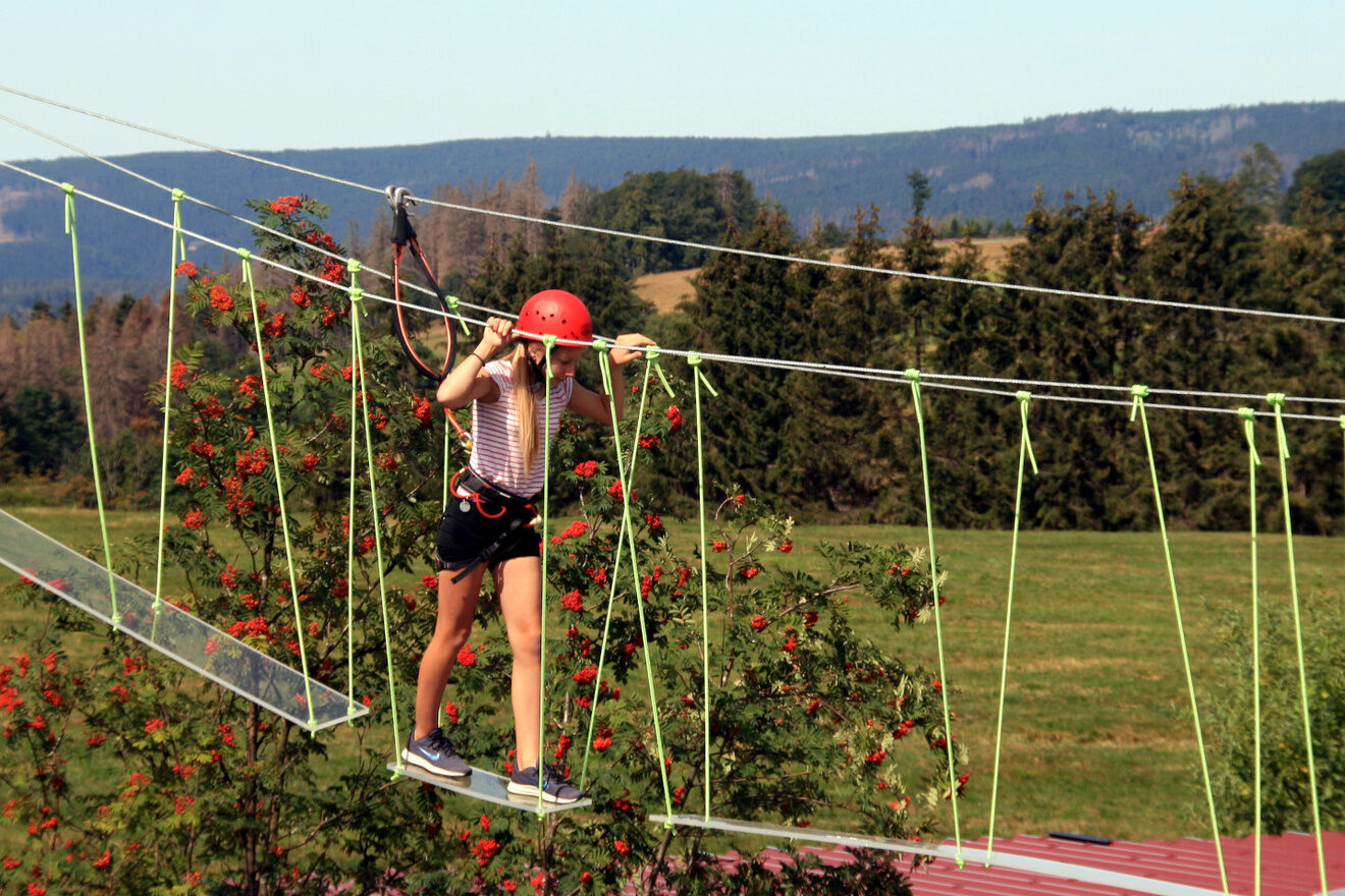 Der Hochseilgarten befindet sich auf 720 m NHN oberhalb der Bergstadt Sankt Andreasberg. Die Anlage hat derzeit eine Länge von 900 m auf zwei Etagen. (Hier gibt es mehr Infos!)