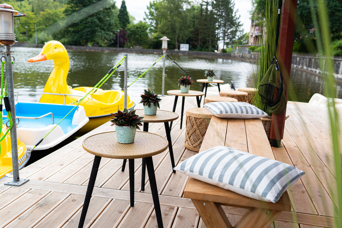 Erleben Sie entspannte Stunden direkt am Wasser: Unsere neue Seeterrasse mit gemütlichen Lounge-Ecken lädt zum Verweilen ein – mit Blick auf die idyllische Seekulisse. Ob bei einem kühlen Drink, einem leckeren Eis oder einer kleinen Bootstour mit Tret- oder Paddelboot – hier wird der Sommer ganz leicht.