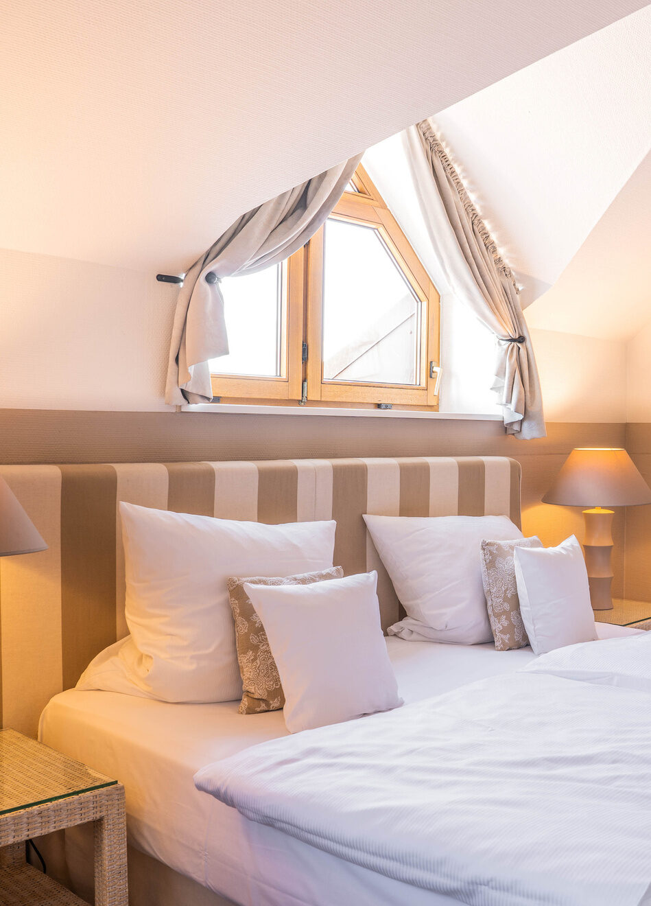 Direkt unter den Dächern vom Romantischen Winkel, aus diesem Grund sind die Zimmer teilweise nur über eine Treppe zu erreichen (Aufzug bis zur 4. Etage, anschließend eine Treppe zu Fuß).