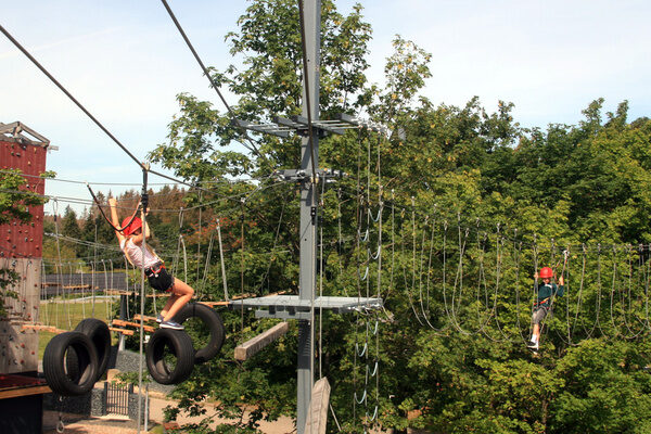 The high ropes course is located at 720 m above sea level above the mountain town of Sankt Andreasberg. The facility currently has a length of 900 m on two floors. (More information here!)