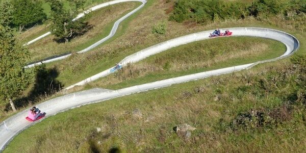 With a length of 550 metres and a difference in altitude of 130 metres, the summer toboggan run on Matthias-Schmidt-Berg offers a special experience for the whole family. (More information here!)