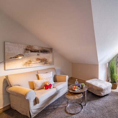 - Obst, Tee, Eistee und Mineralwasser im SPA-Wohnzimmer