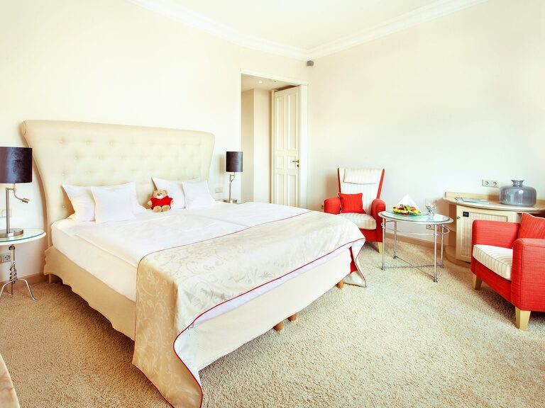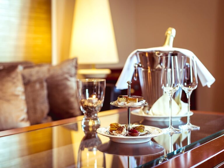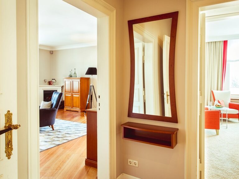 Living room and bedroom, 1 bathroom featuring shower, bathtub and double washstand, 1 bathroom with shower, walk-in wardrobe, cable TV in living room and bedroom, Hi-Fi system, Wi-Fi, telephone, minibar, coffee and tea-making facilities, room safe, hairdryer, make-up mirror, soft bathrobe, towels and a cuddly blanket in your own personal swim bag