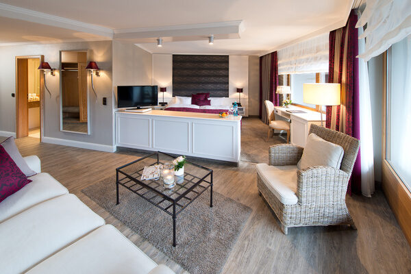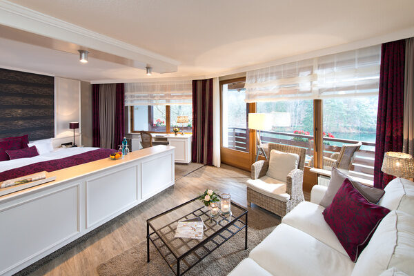 Ideal for indulgent stays: An open living and sleeping area flooded with natural light and a generous panoramic loggia with a fantastic view of the lake or park scenery, as well as a shower bath with separate WC.